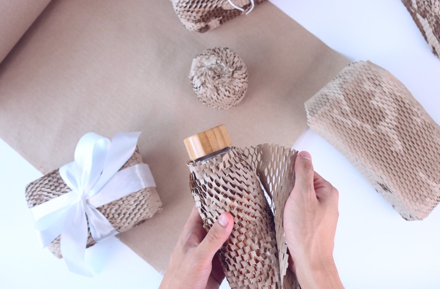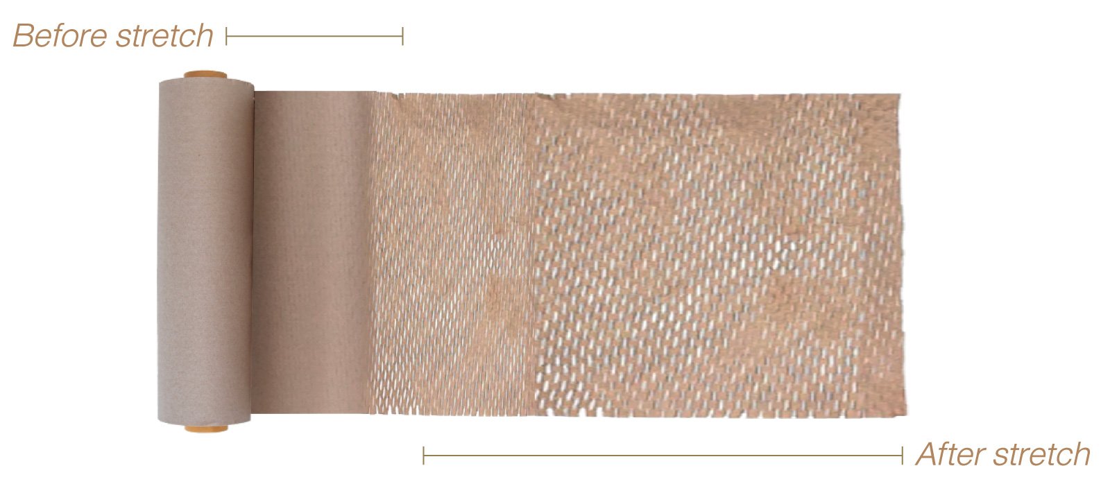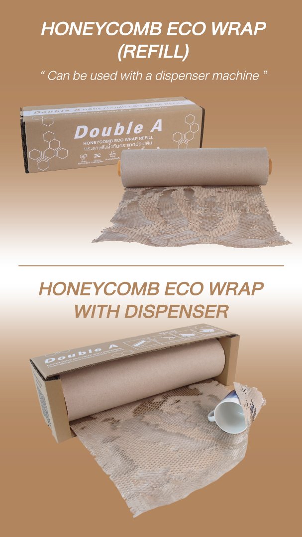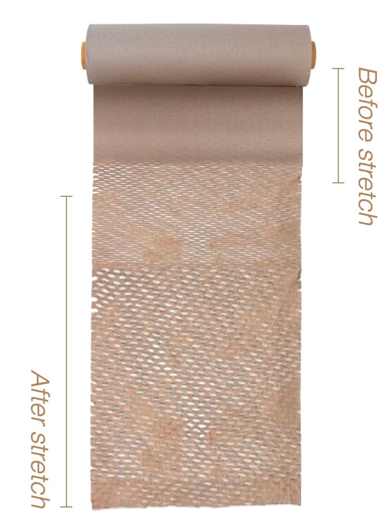 When finished wrapping, tear off the paper from a roll without the need of scissors.