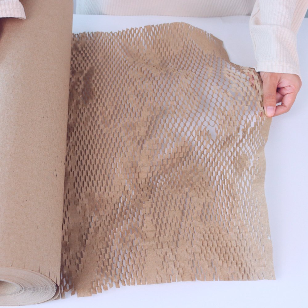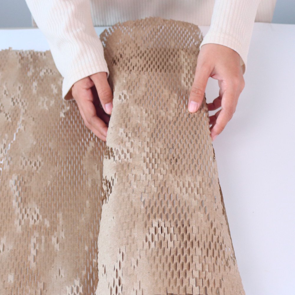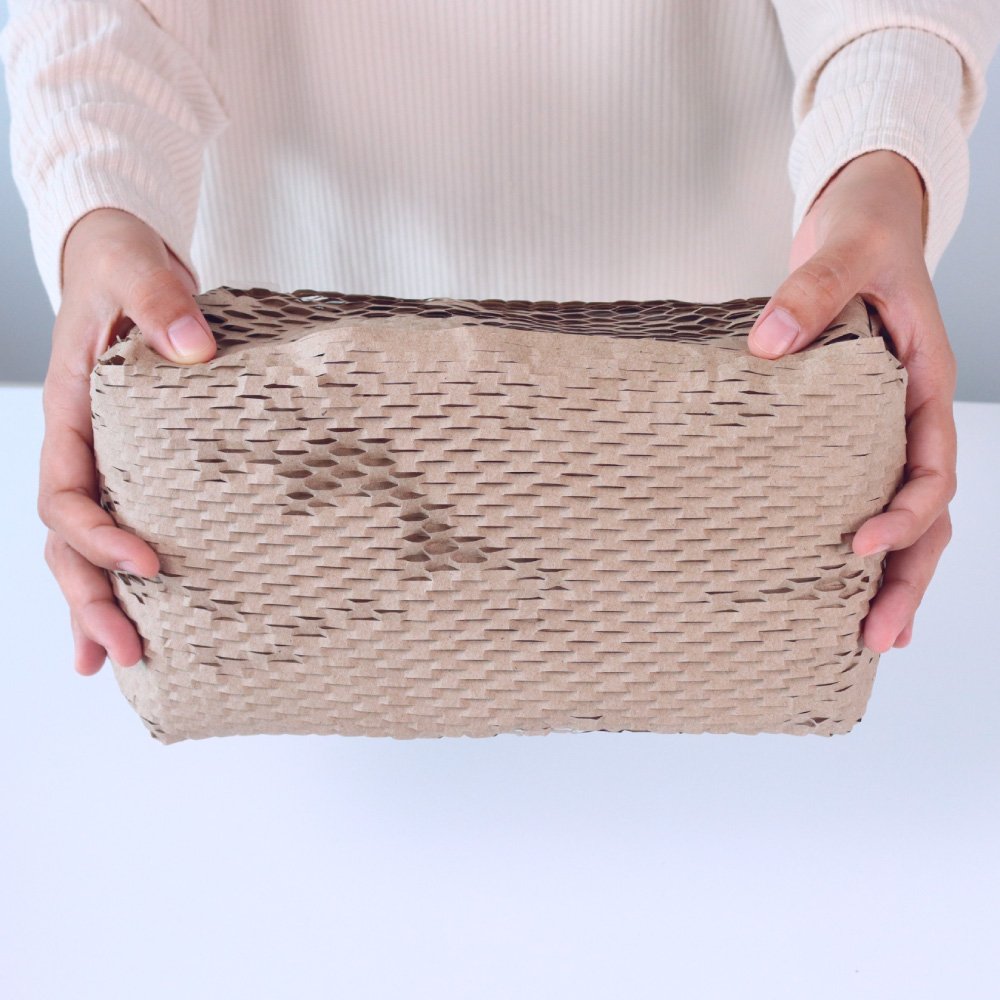 When finished wrapping, tear off the paper from a roll without the need of scissors.